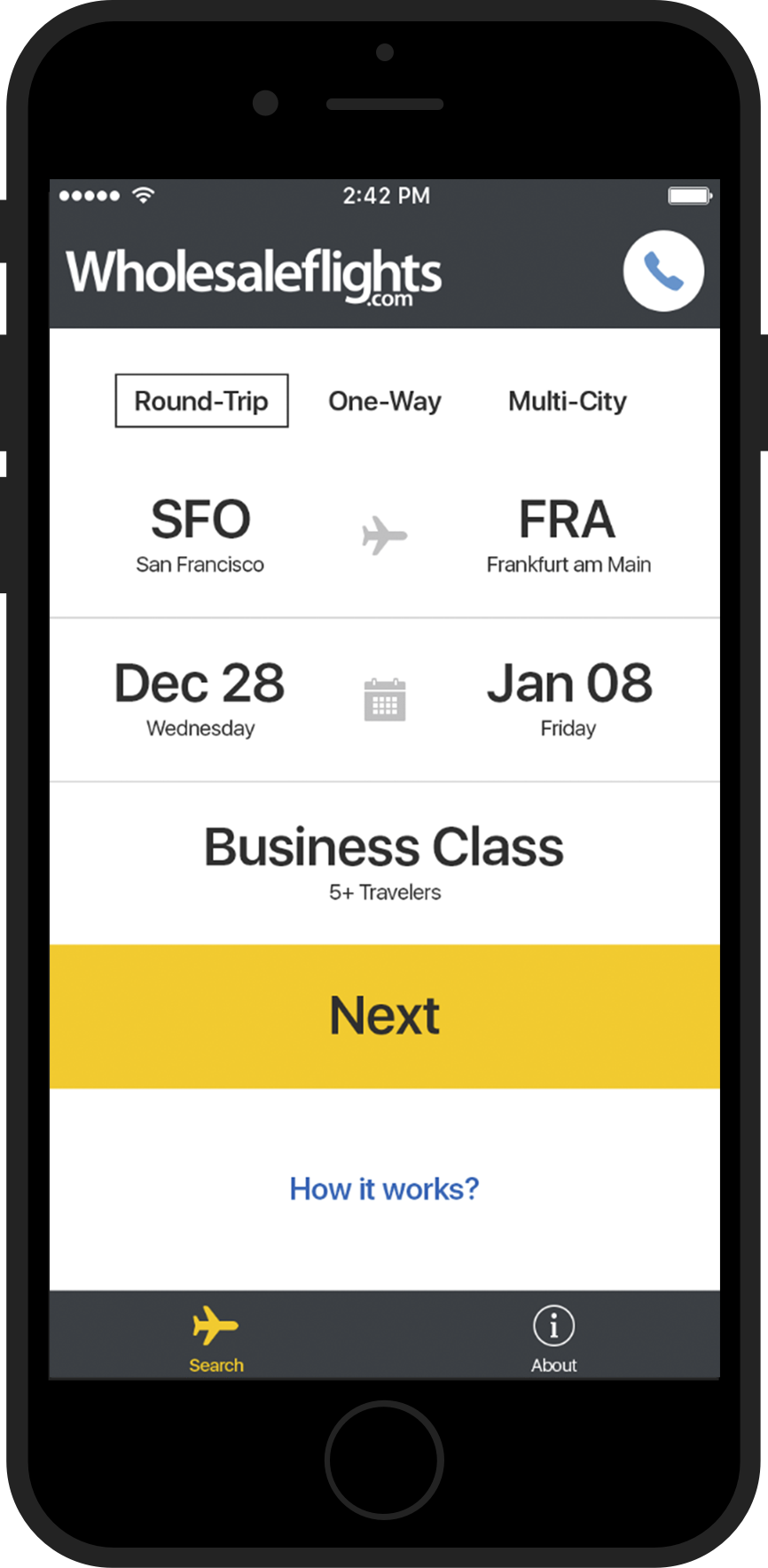 The easiest and fastest way to get a quote and save up to 70% off business class flights.